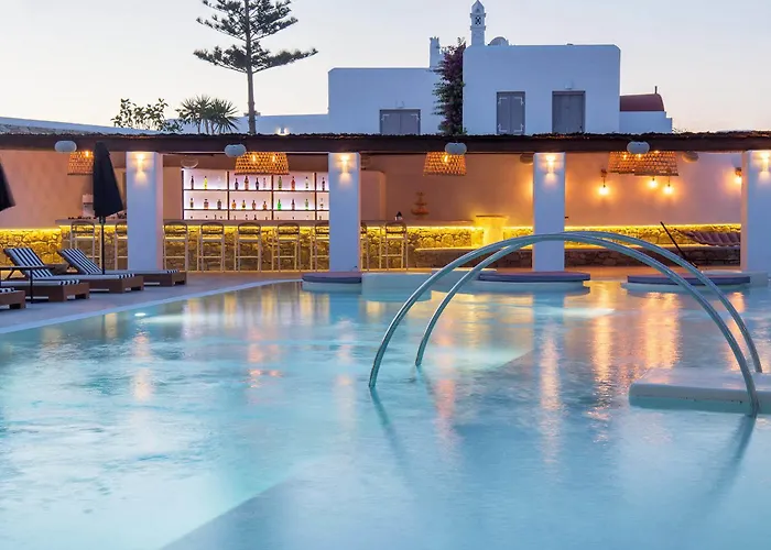 Die Lage des Hotels ist perfekt für diejenigen, die sowohl Entspannung als auch Abenteuer suchen. Umgeben von üppiger Natur und nur wenige Autominuten von den besten Stränden und Sehenswürdigkeiten entfernt, bietet es eine ideale Basis für Erkundungstouren. Die charmante Stadt Mykonos mit ihren malerischen Gassen und dem lebendigen Nachtleben ist schnell erreichbar.